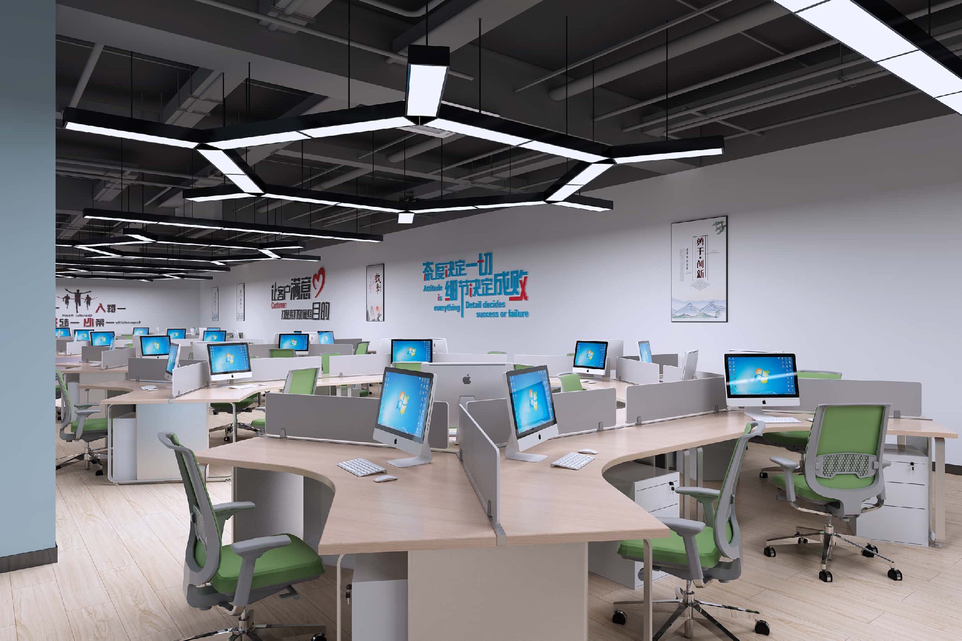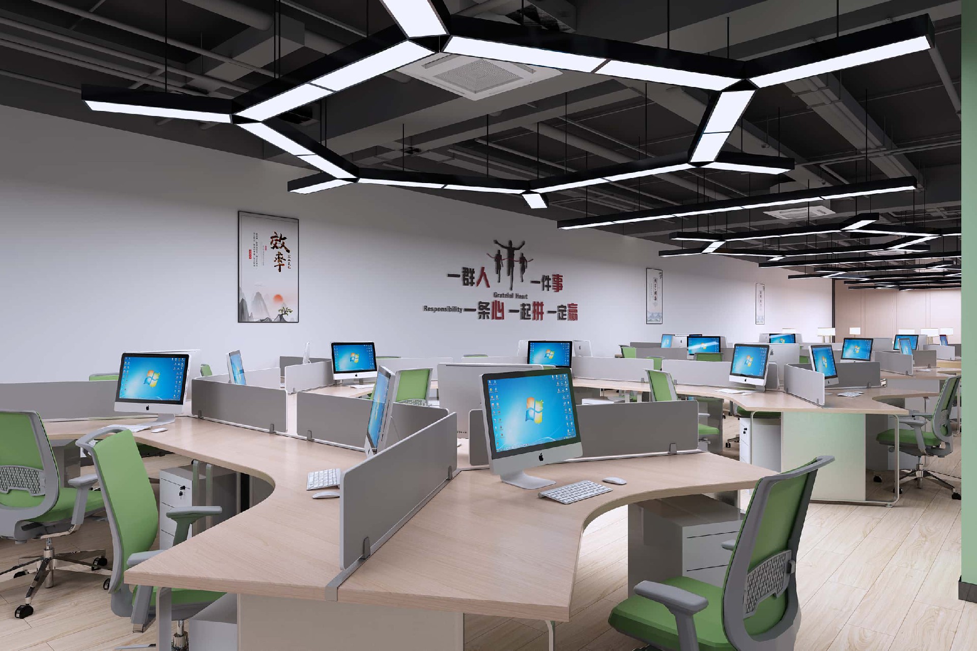 本設計(jì)為(wèi)濟甯華弘電(diàn)子(zǐ)科(•πkē)技(jì)打造辦公空(kōng)間(jiān),前台以白(bái)色大(dà)理(lǐ)'π✘∏石與木(mù)質結合,簡潔大(dà)氣顯專業(yè)。辦公區(qū)開(kāi)放(f÷★Ωàng)式布局,淺木(mù)色桌配綠(lǜ)椅,色彩明(míng) " 快(kuài),幾何燈具添時(shí)尚,牆面标語展文(wén)化(huà)。走廊寬敞,色彩豐' δ富且标識清晰。領導辦公室色調沉穩,功能(néng)分(fēn)區(qū)明(míng)确♠↑>,辦公、會(huì)客、休閑皆備,木(mù)質元素顯品≠質,天窗(chuāng)引自(zì)然光(guāng)。整體(tǐ)設"δ₹±計(jì)注重功能(néng)與舒适,融合現(xiàn↔ )代與文(wén)化(huà)元素,營造高(gāo)效且溫馨的(de)辦公環•↔境,助力提升企業(yè)形象與員(yuán)工(gōng)體(tǐ)驗。