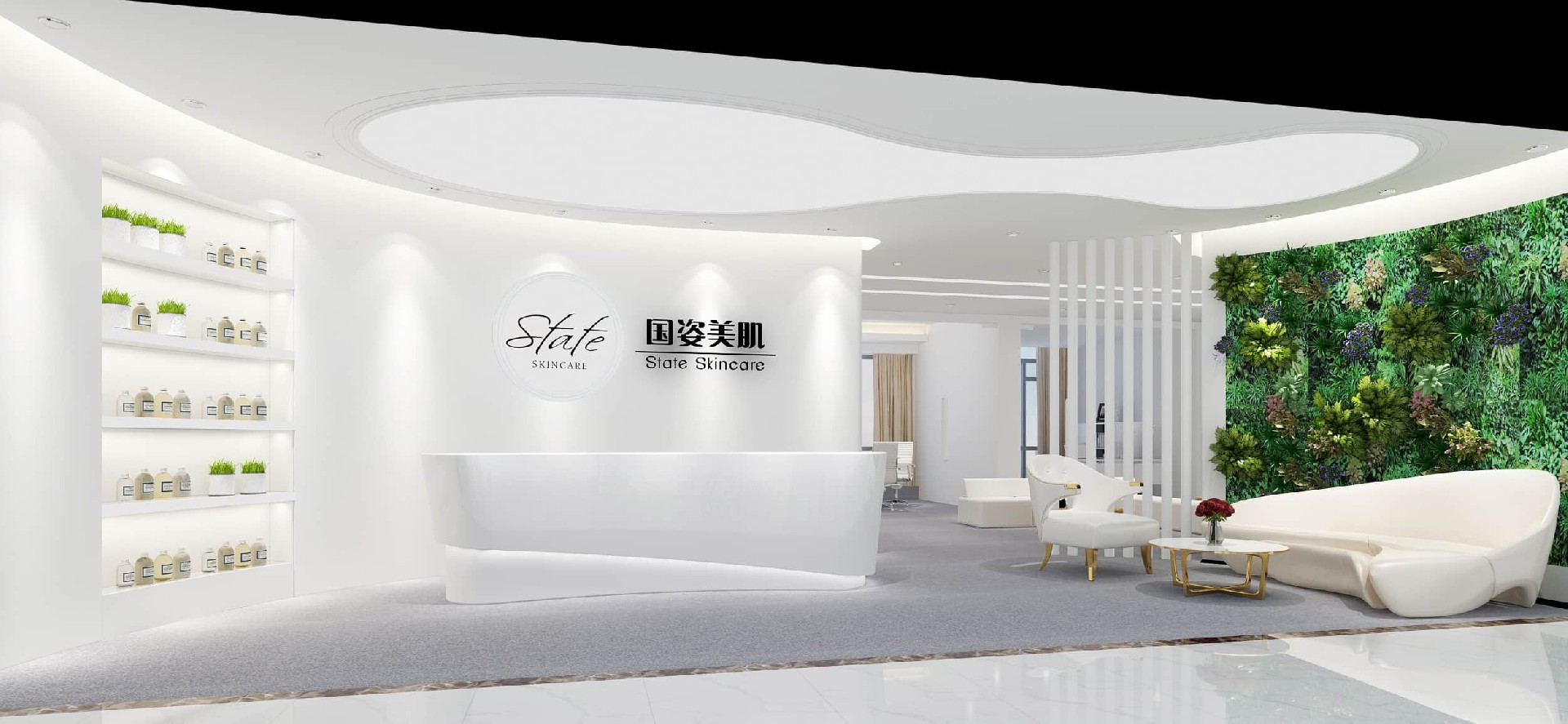 這(zhè)是(shì) “國(guó)姿美(měi)肌” 的(de)空(kōng)間↔→§§(jiān)設計(jì)方案。入口處采用(yòng)銅色邊框搭配通(tōng)透玻璃∑& ₹,既醒目又(yòu)具現(xiàn)代感。室內(nèi)以純淨白γ€(bái)色為(wèi)主色調,營造出簡潔、潔淨的(de)氛圍,契合美(měi)肌品牌對(duì<∑φ)純淨、專業(yè)的(de)追求。