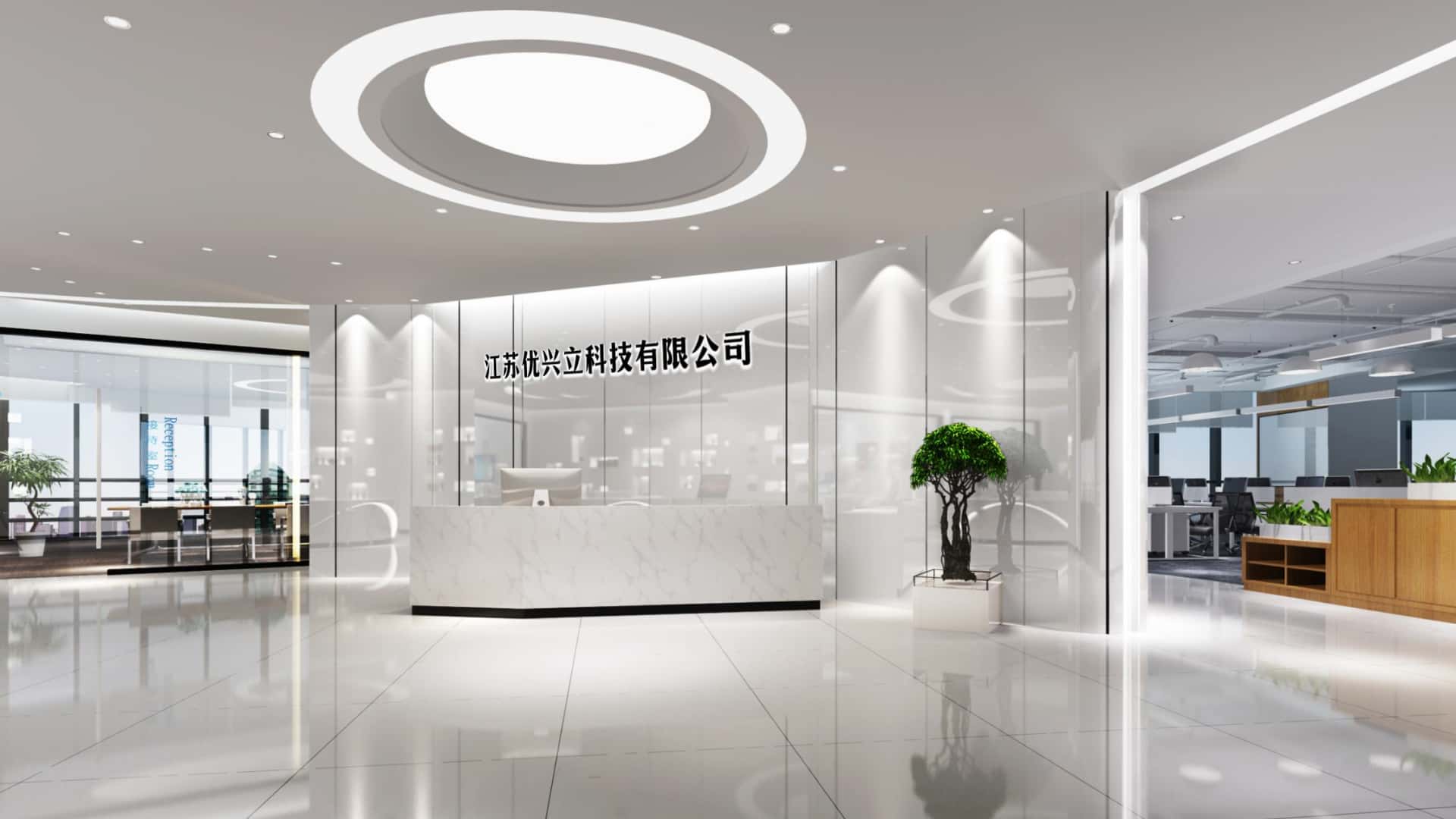 江蘇優興立科(kē)技(jì)有(yǒu)限公司的(de)§₩空(kōng)間(jiān)設計(jì),以現(xià←™≈∞n)代簡約風(fēng)格為(wèi)主調,兼顧辦公與生(sγ₩ $hēng)産需求。
