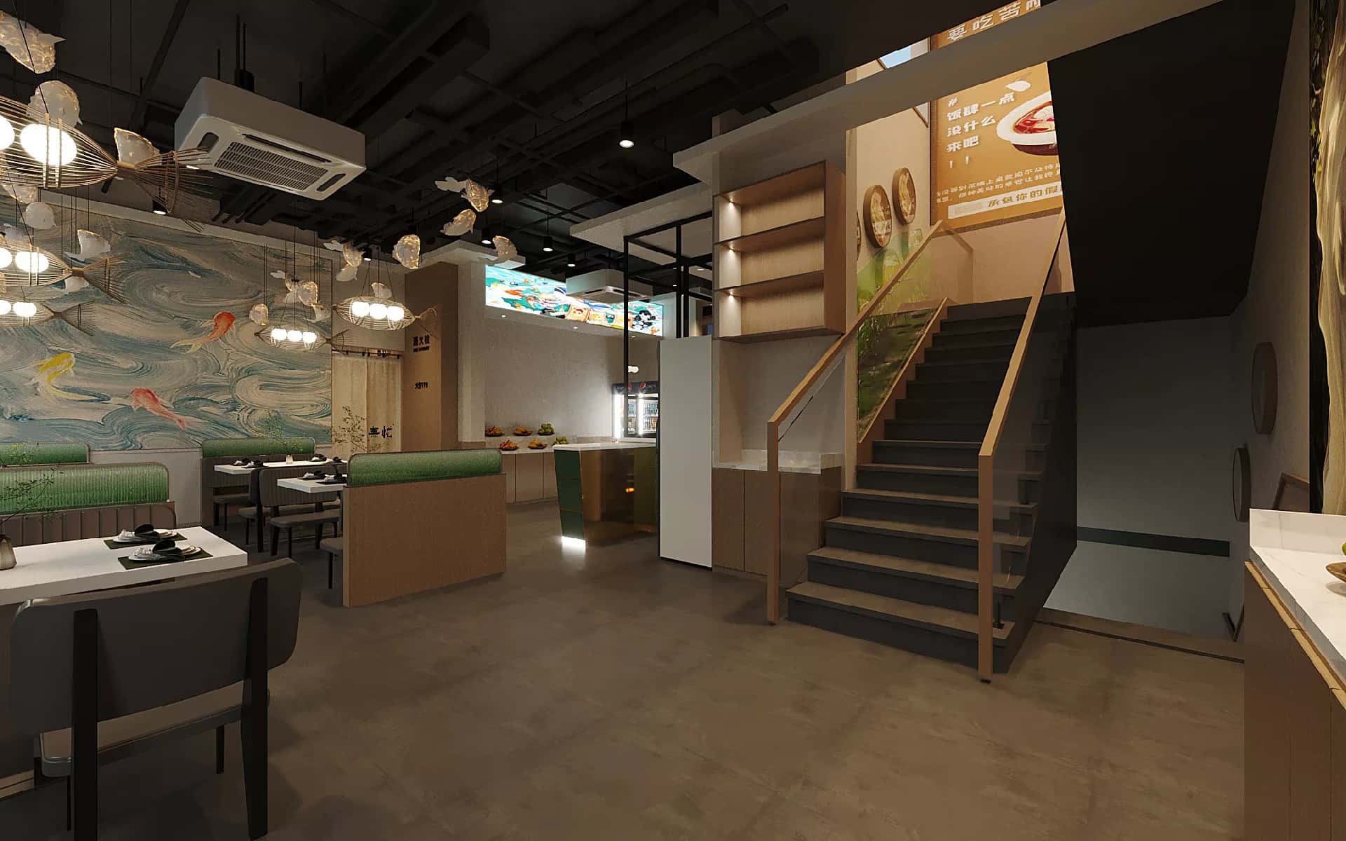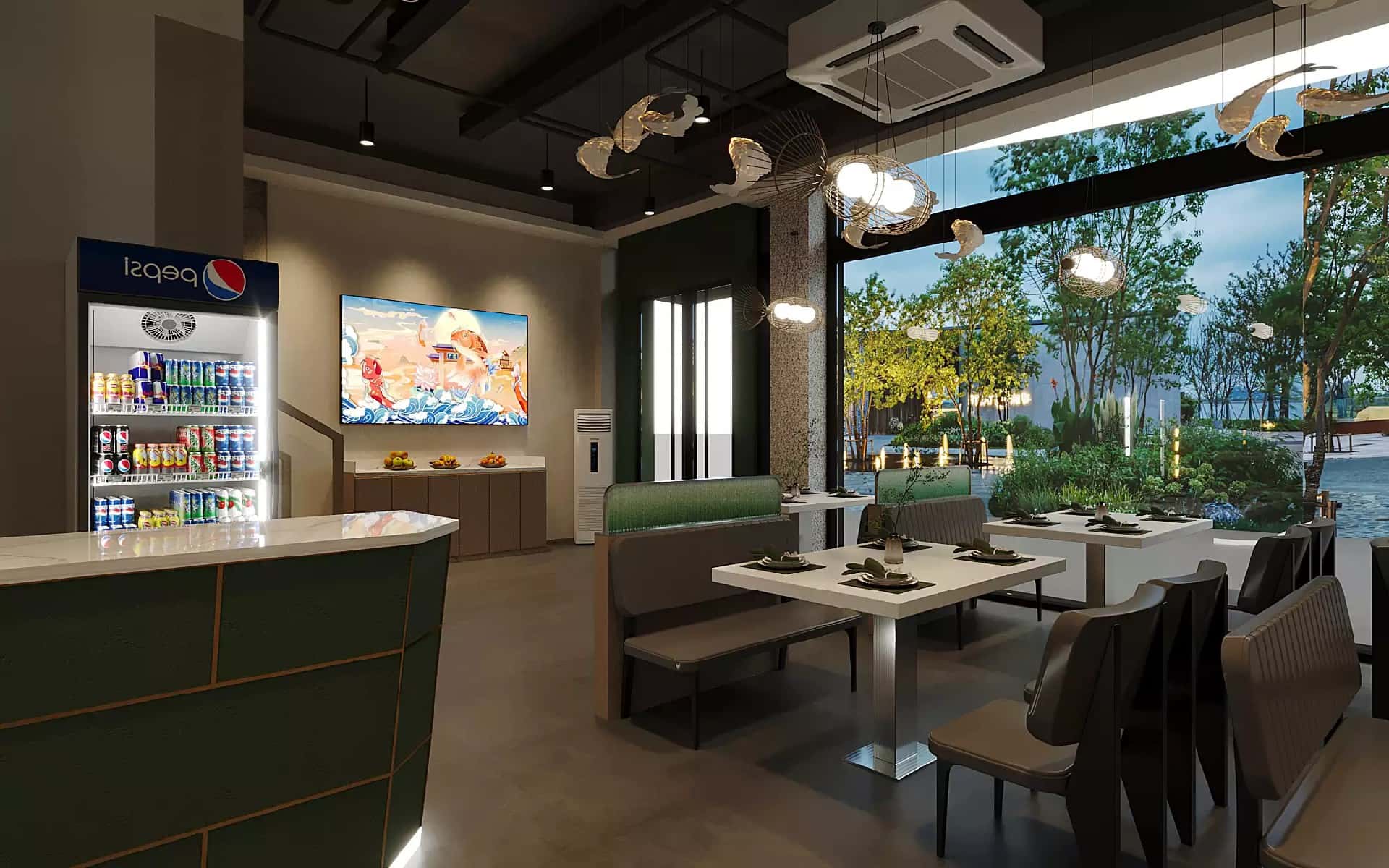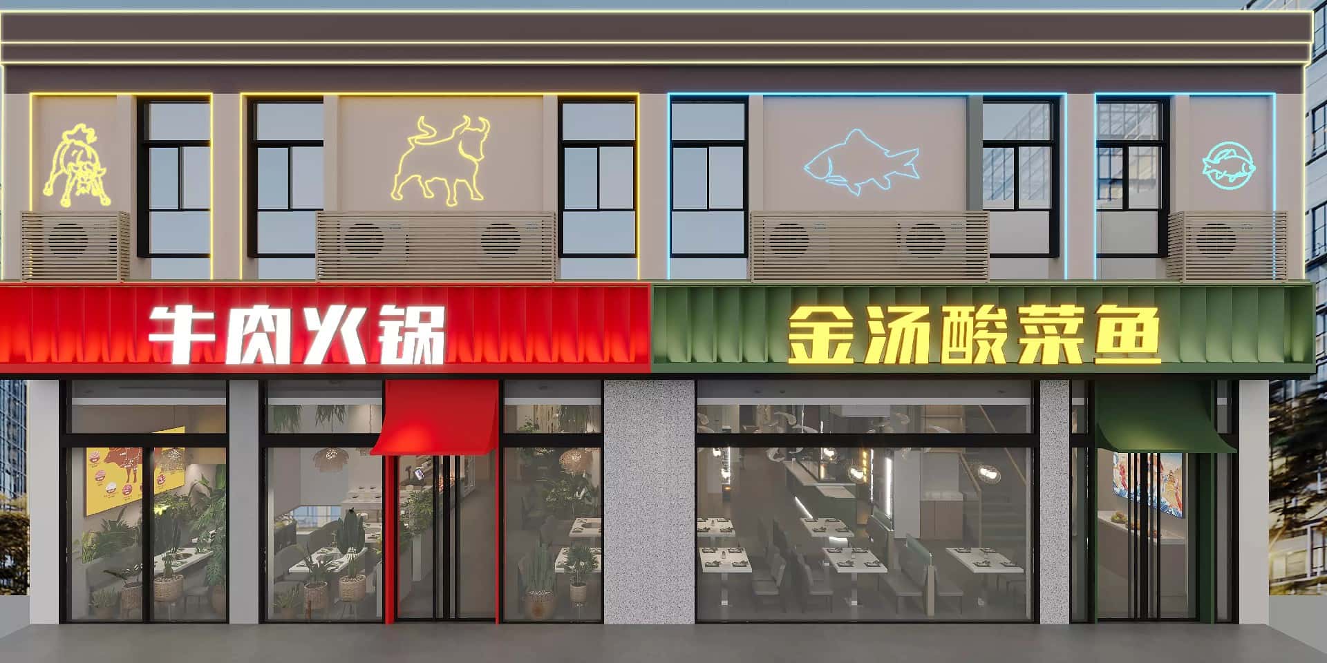 本設計(jì)為(wèi)一(yī)家(jiā)融合牛肉火(huǒ)鍋與金↓δ(jīn)湯酸菜魚的(de)餐廳,整體(tǐ)風(fēng←↕ )格現(xiàn)代且富有(yǒu)活力。