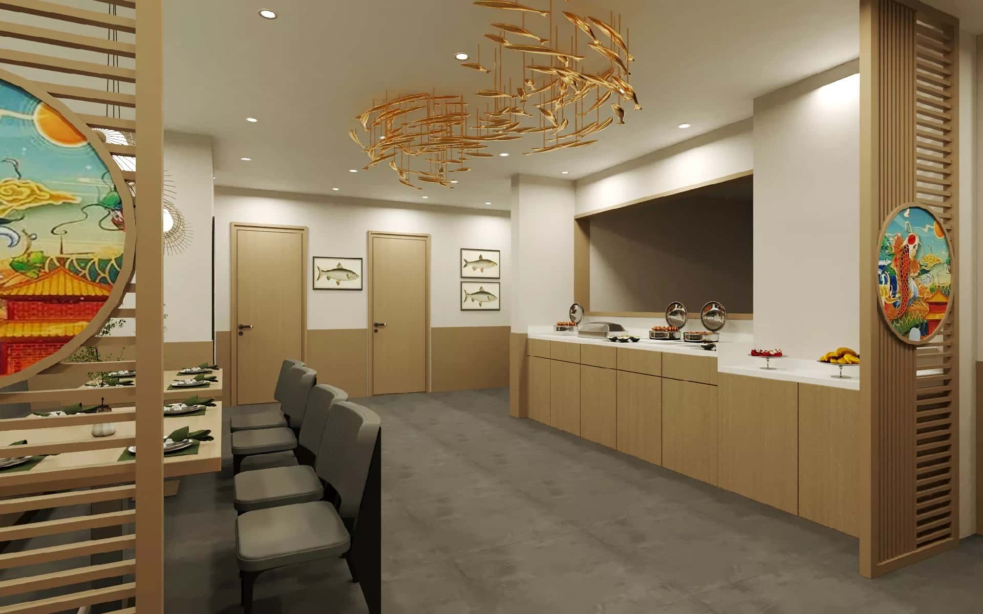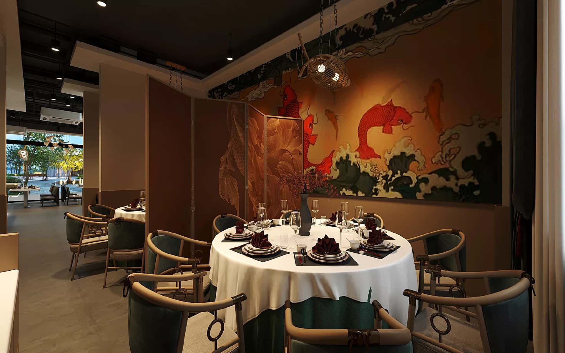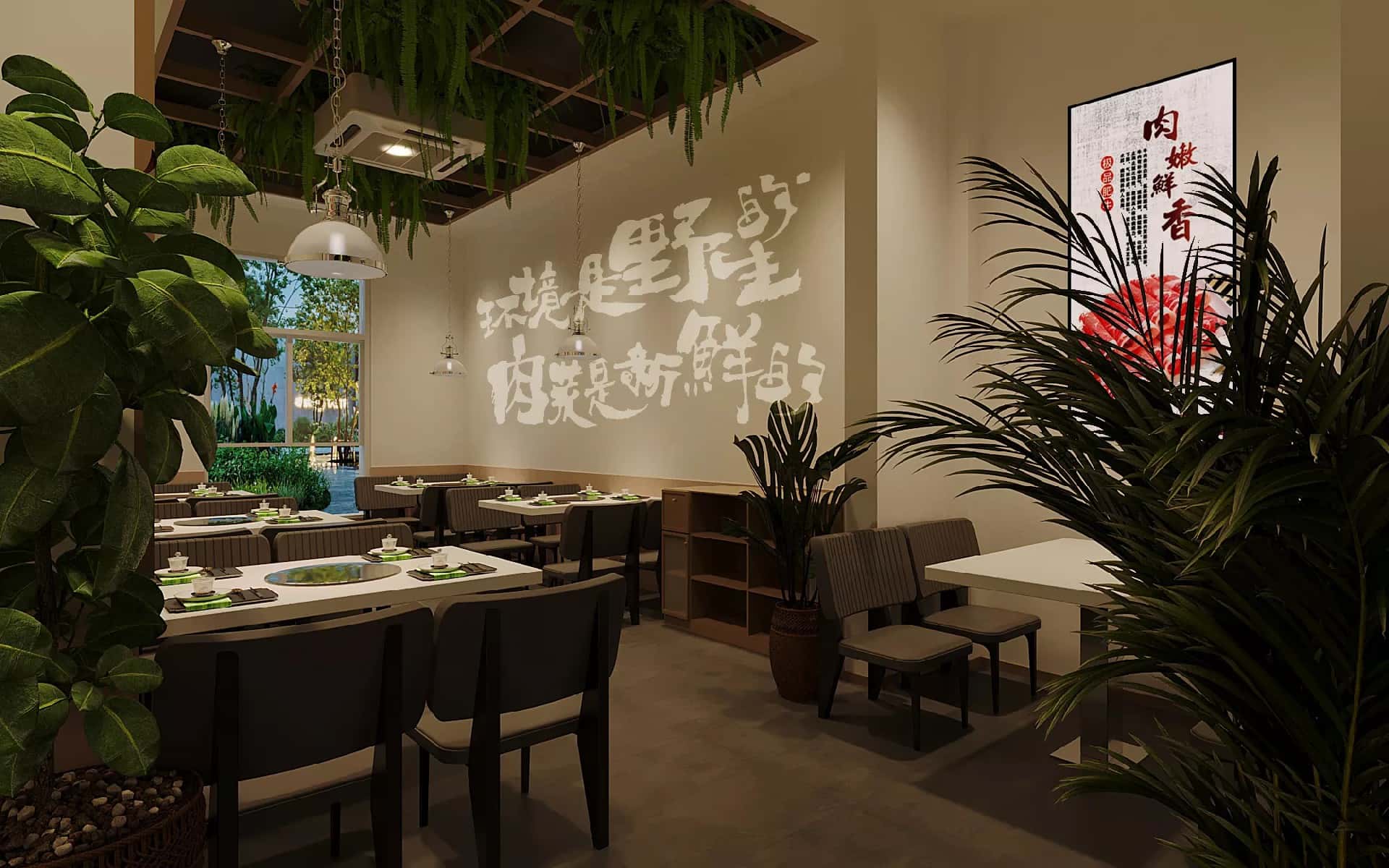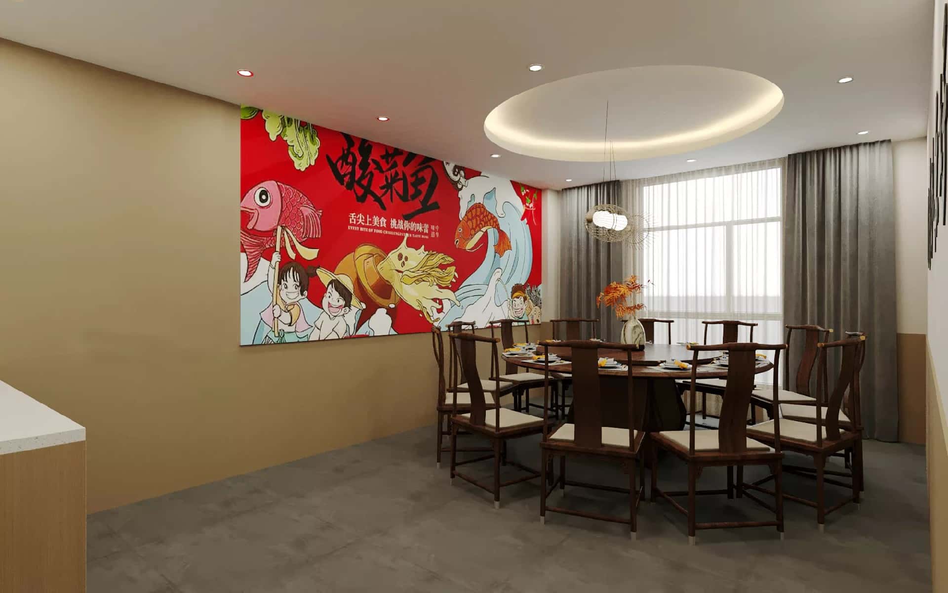 本設計(jì)為(wèi)一(yī)家(jiā)融合牛肉火(huǒ)鍋與金↓δ(jīn)湯酸菜魚的(de)餐廳,整體(tǐ)風(fēng←↕ )格現(xiàn)代且富有(yǒu)活力。