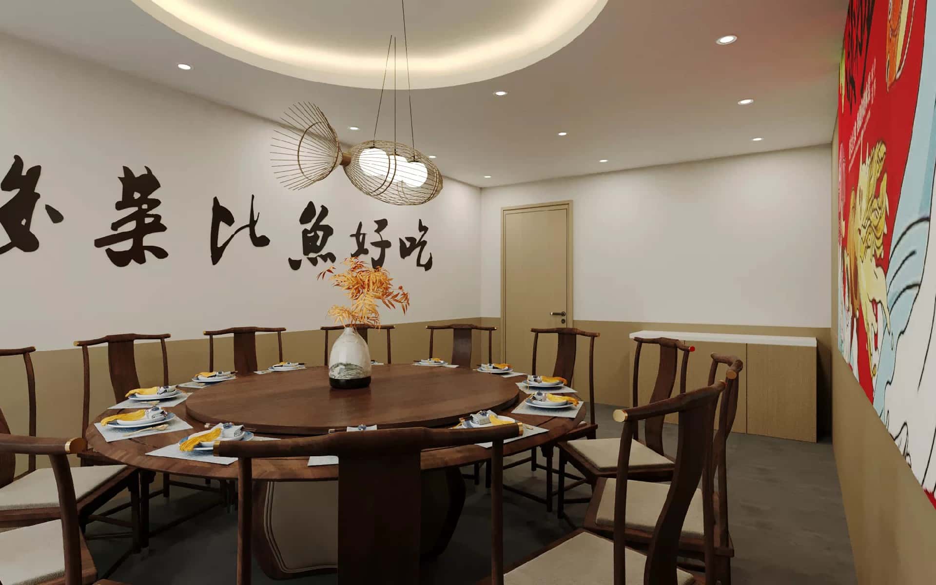 外(wài)部招牌采用(yòng)紅(hóng)、綠(lǜ)兩色,醒目且區←¶∞(qū)分(fēn)明(míng)确。室內(nèi)空(kōng)間(jiān)布局合理(lǐλγ),散座區(qū)與包間(jiān)各具特色。牆面裝飾以魚為(wèi)主題的(γ♦de)壁畫(huà)和(hé)文(wén)字,呼應餐廳菜品,增添文&♥✔(wén)化(huà)氛圍。燈光(guāng)設計(jì)巧妙,吊燈造型别緻,營★←造溫馨就(jiù)餐環境。家(jiā)具選擇上(shàng),木(mù)質桌椅搭β∞配現(xiàn)代風(fēng)格的(de)軟裝,舒适且美(♣≈měi)觀。綠(lǜ)植點綴其間(jiān),使空(↔∏kōng)間(jiān)更具生(shēng)機(jī)。整體(tǐ)™♥₽設計(jì)旨在打造一(yī)個(gè)既具特色又(yòu)舒适宜人(rén)的(de)餐飲空φ↔(kōng)間(jiān),吸引顧客前來(lái)品嘗美(měi)味。