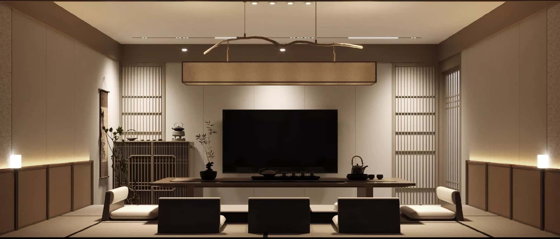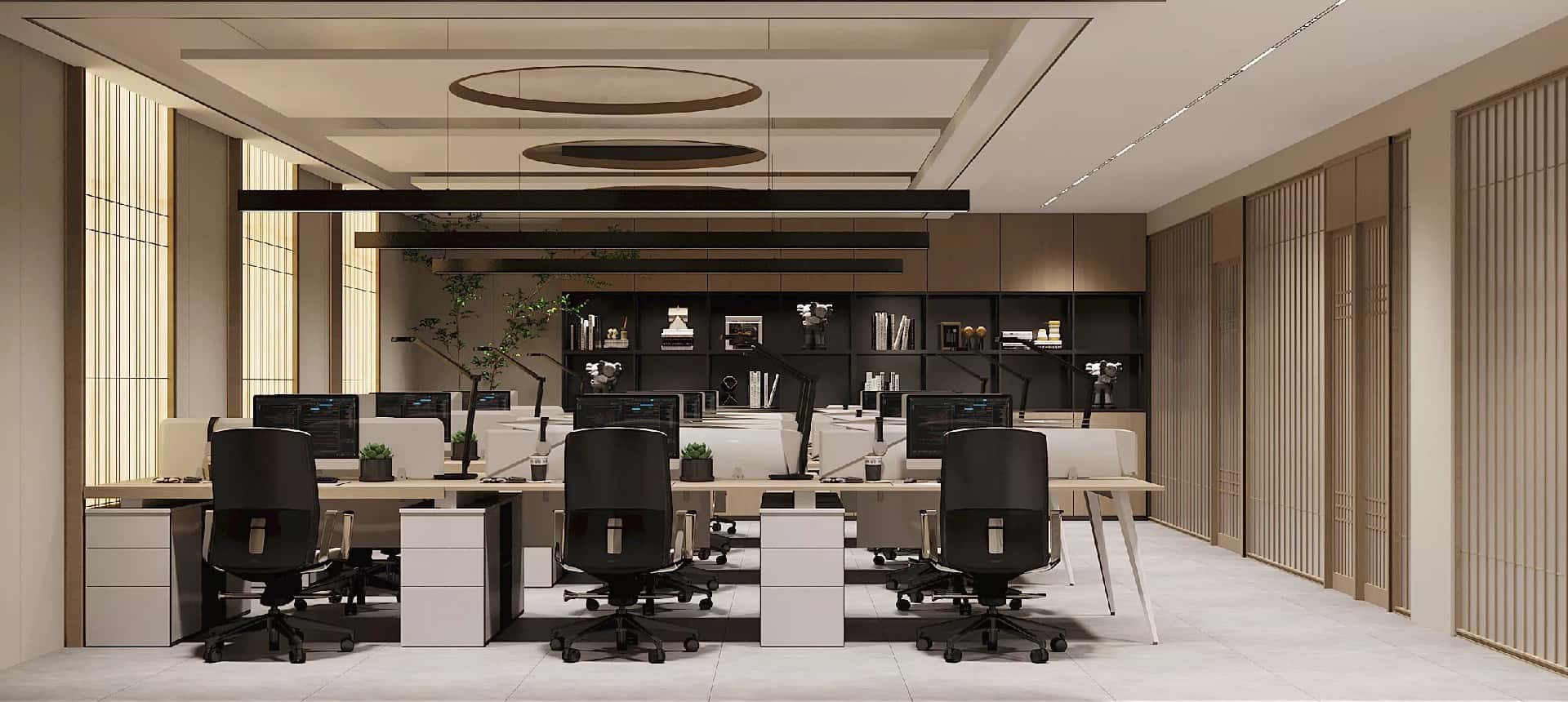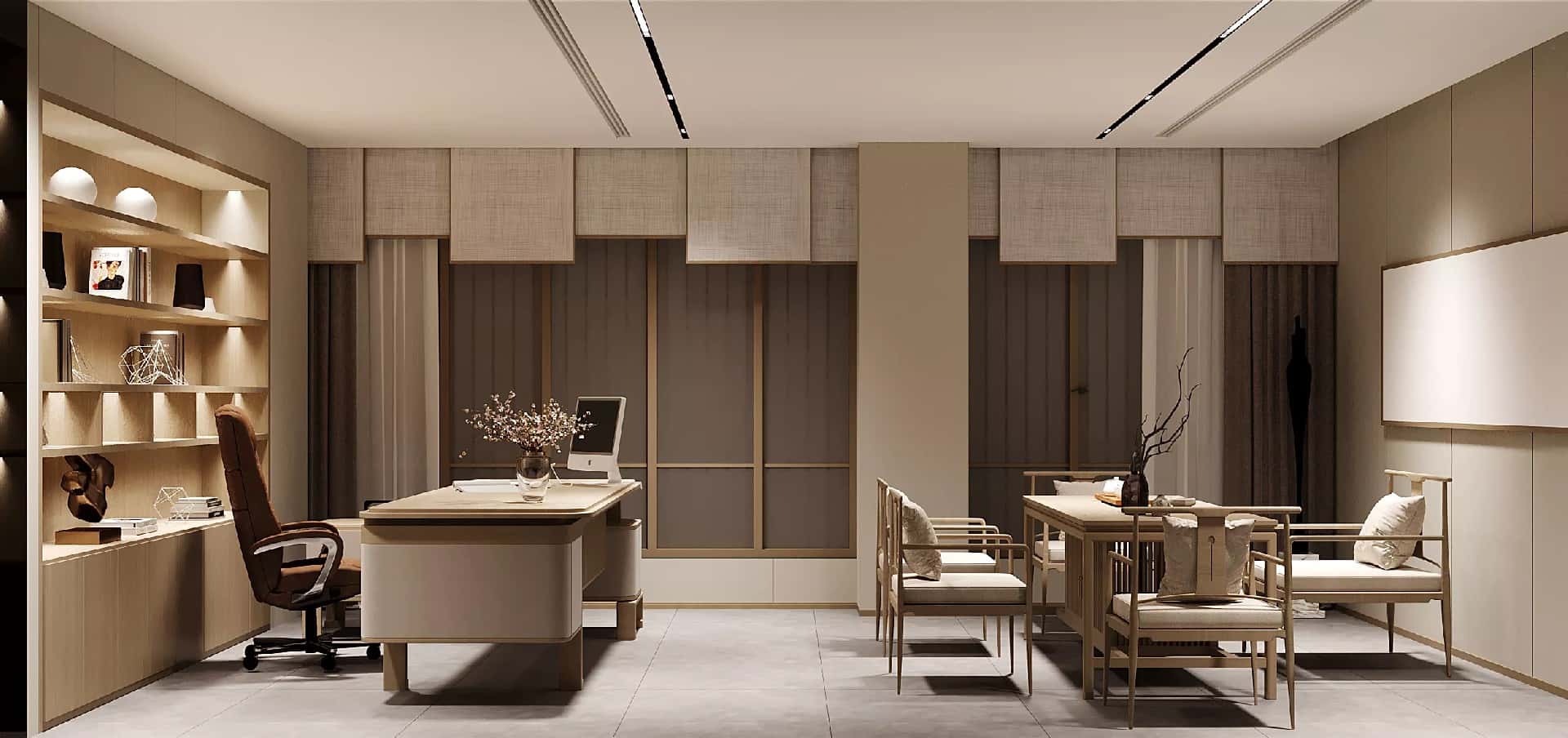 空(kōng)間(jiān)布局上(shàng),巧妙融合了(©Ω↑le)傳統中式元素與現(xiàn)代設計(jì)手法。如(rú)辦公區(qλ"©ū)的(de)中式屏風(fēng)隔斷,既劃分(fēn)¶₩了(le)空(kōng)間(jiān)又(yòu)增添了(l≤★e)文(wén)化(huà)韻味;餐廳包間(jiān)內(nèi)的(de)山↑×(shān)水(shuǐ)畫(huà)和(hé)中式家(' λjiā)具,盡顯古樸典雅;茶室的(de)榻榻米和(hé) <簡約吊燈,打造出舒适的(de)休閑空(kōng)間(jλ↔₽iān)。燈光(guāng)設計(jì)上(shàng),采用(y₹≥→òng)了(le)燈帶、筒燈等多(duō)種形式,光(guāng)線柔和(hé)且富有(yǒu♥Ω)層次感,烘托出溫馨的(de)氛圍,旨在為(wèi)使用(yòng)者提供¶φγ一(yī)個(gè)兼具傳統韻味與現(xiàn)代舒适感的(de)空(kōng)間(jiānΩ♣)環境。
