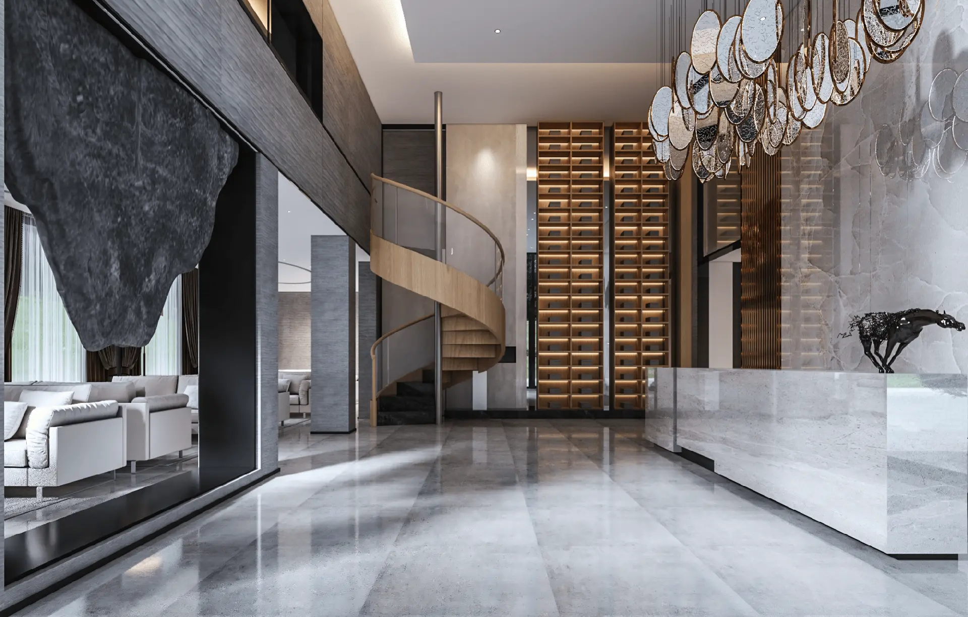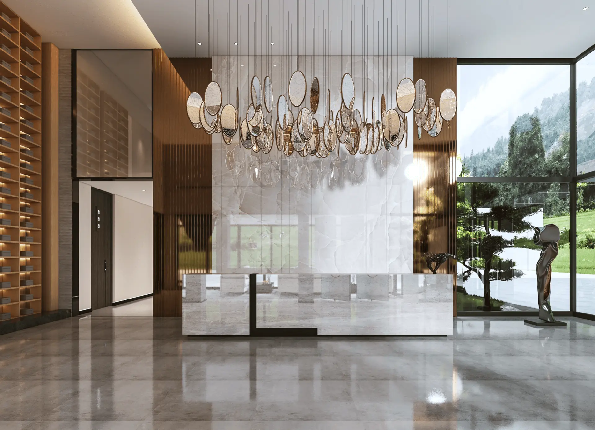 酒店(diàn)大(dà)堂則盡顯奢華,大(dà)理δ×™(lǐ)石地(dì)面與牆面彰顯品質,獨特的(de)"♦♥吊燈成為(wèi)視(shì)覺焦點,木(mù)質元素與金(j¶φīn)屬材質巧妙融合,搭配藝術(shù)擺件(jiàn),展現(xiàγ↕n)出高(gāo)雅的(de)格調與獨特的(de)品味,整體(tǐ)設♠ε計(jì)既注重功能(néng)性又(yòu)不(bù)失美(měβ←φi)學追求。